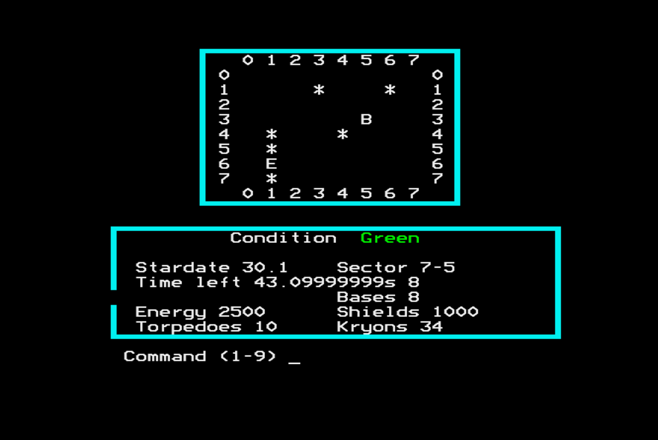 The next version I clearly remember playing is on the PC. I downloaded EGA Trek from a BBS probably around 1990 on a 2400bps modem. Yes. Bits per second. We did NOT have fibre to the door!