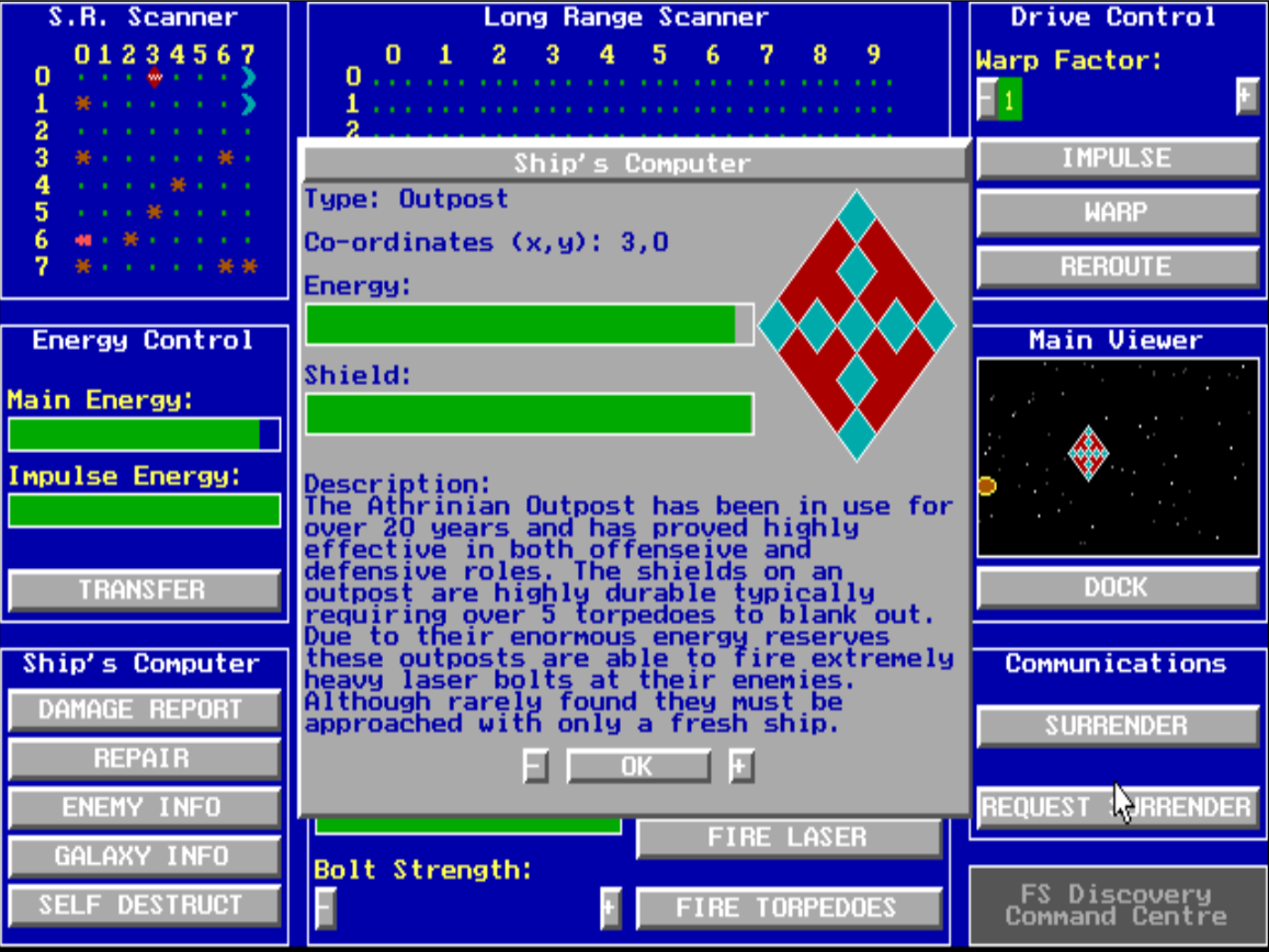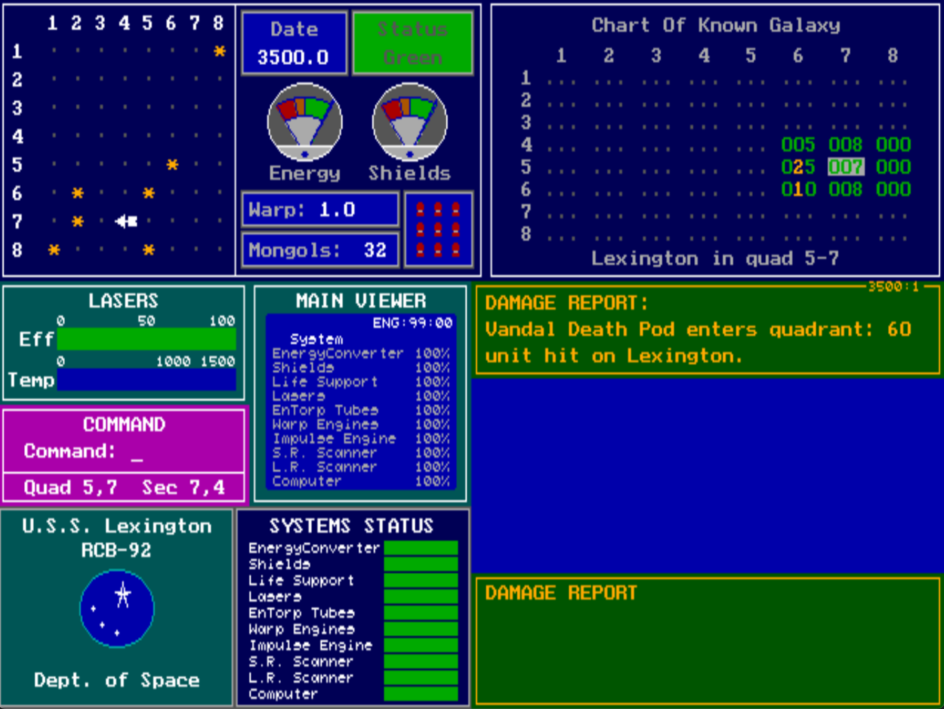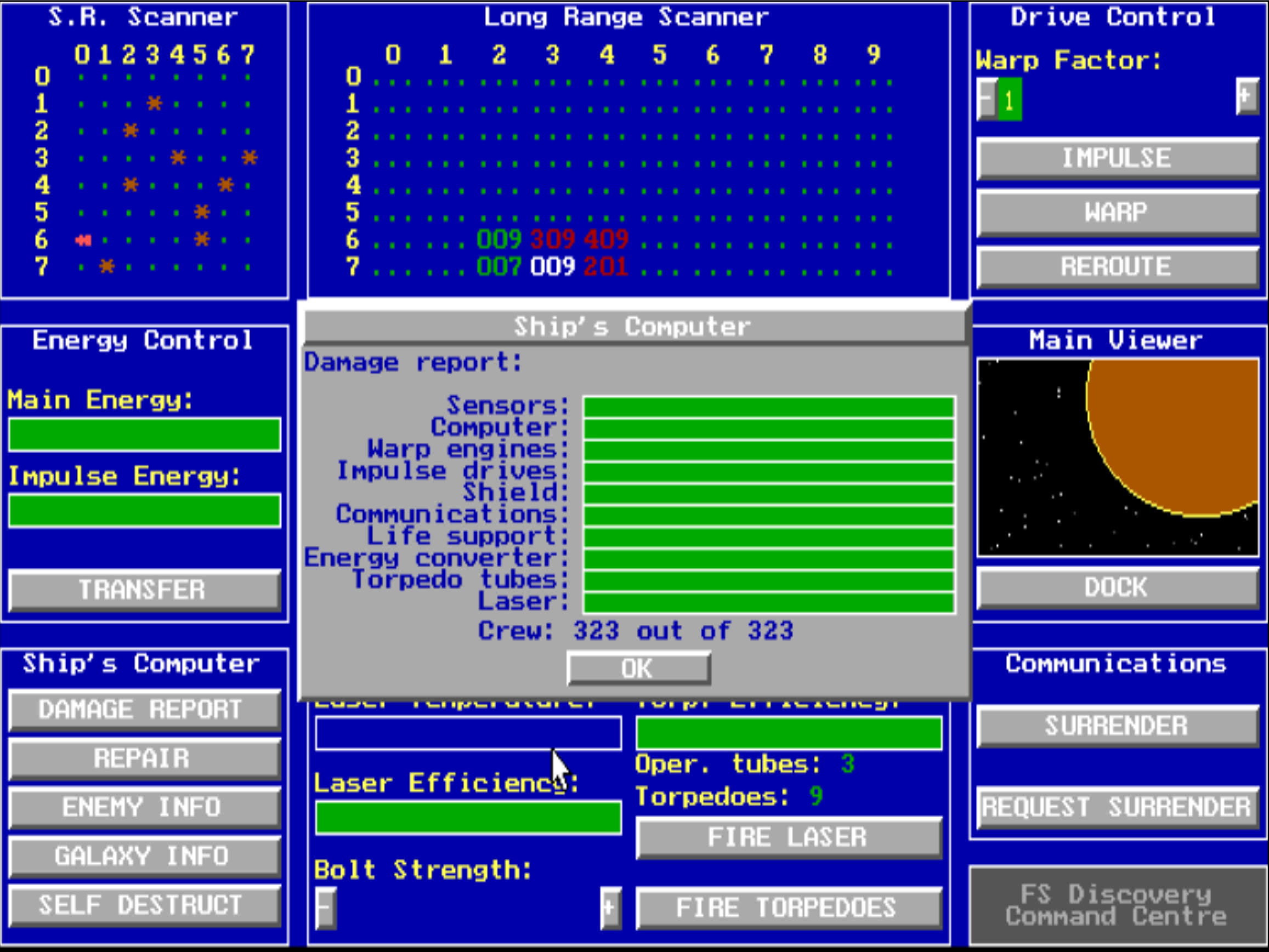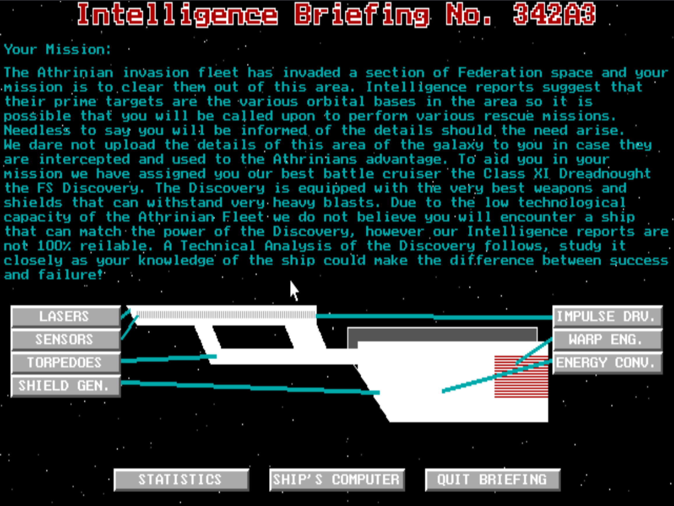 However I’d always been more interested in coding than gaming and around the same time I’d been learning C, first on my BBC (I had a BBC until well past their prime), and then on an Amstrad PC 1512 with Turbo C (version 1.5 I believe). I was also deeply into Star Trek: The Next Generation and so decided to create my own version. I think, think, that just before I started it I somehow managed to get hold of an 80386 PC. My parents must have bought it. I know at some point I sold my BBC for something PC related but I, again think, that was to upgrade the 386 to an 80486.